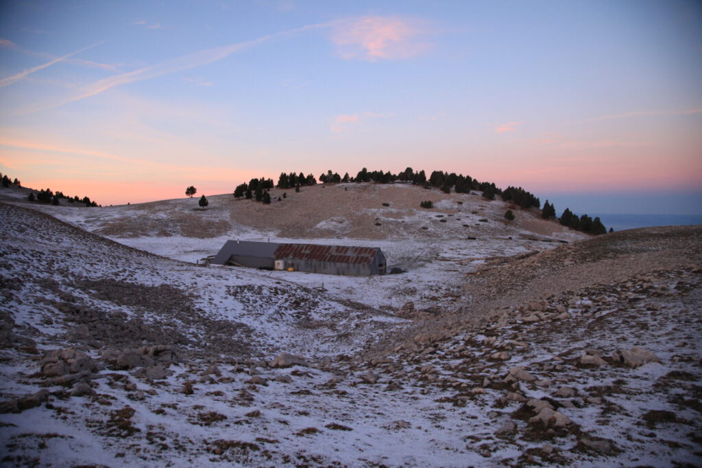 Cabane : Bergerie Laval d’Aix : hors sentier, il faut rentrer sur le plateau sur 200 m pour l’apercevoir. Utilisable sauf l’été quand les moutons sont en paturages. 6pl. Renovée. Si vous demarrez tard, vous pouvez aussi dormir à la cabane de Châtillon (attention elle est assez connue).