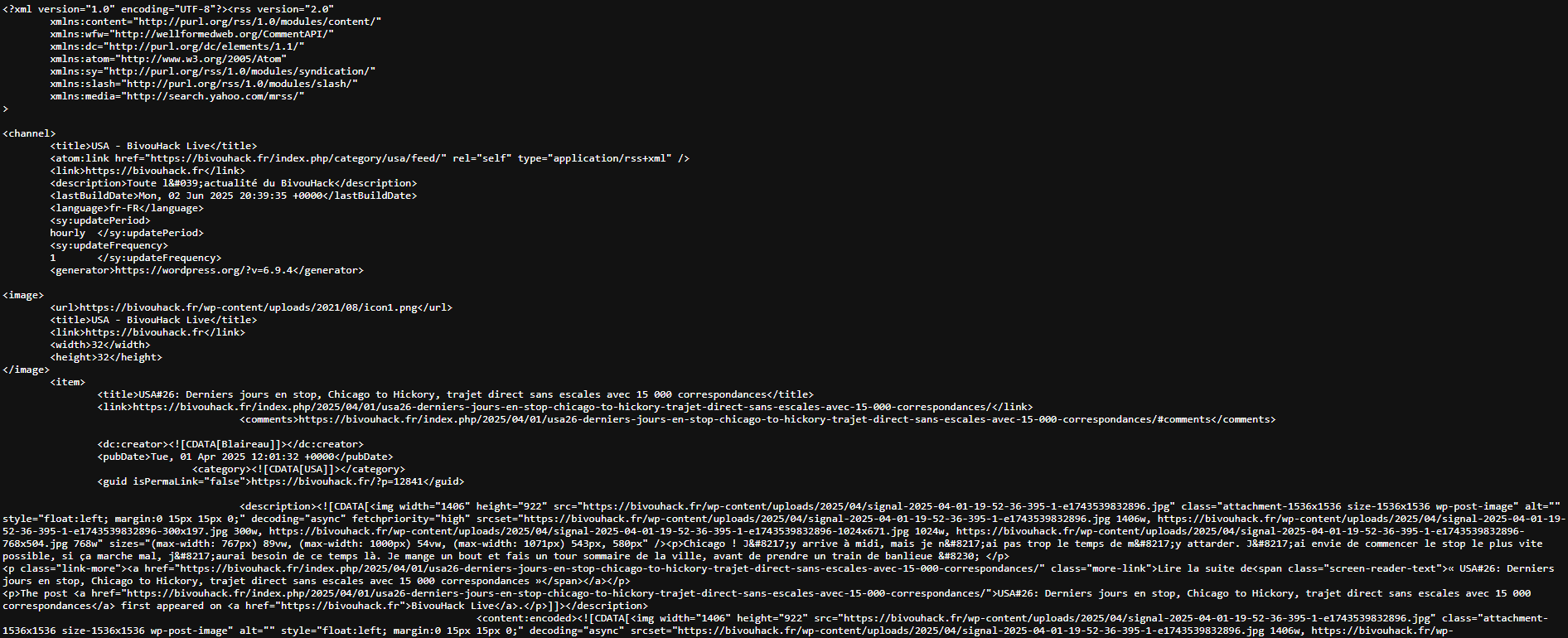 Dans ce tuto, je vais sauvegarder tous les articles de la série sur les Etats-Unis. Le flux RSS est disponible ici: https://bivouhack.fr/index.php/category/usa/feed/